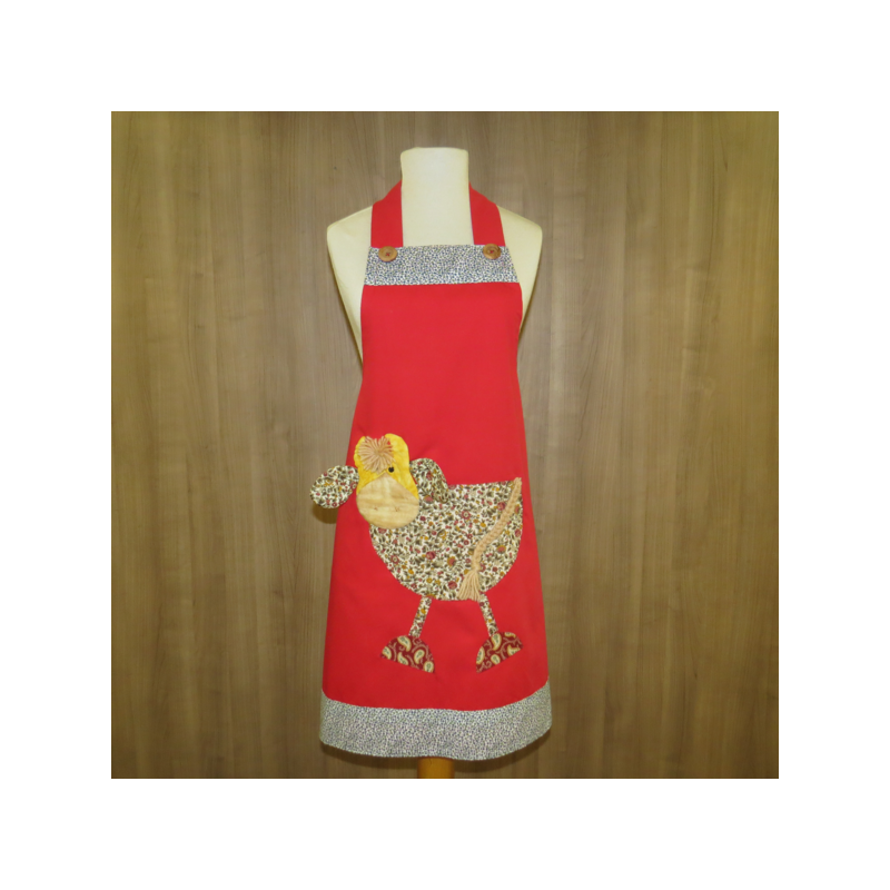 Avental em sarja com aplicação.