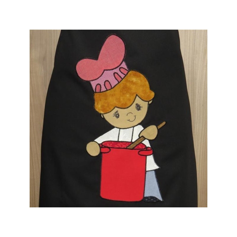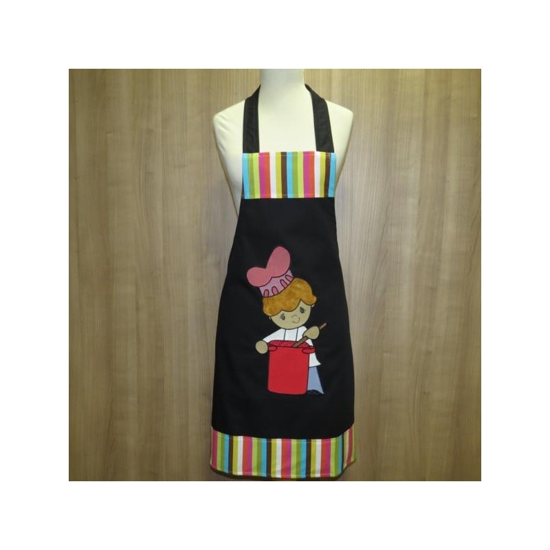 Avental em sarja com aplicação.