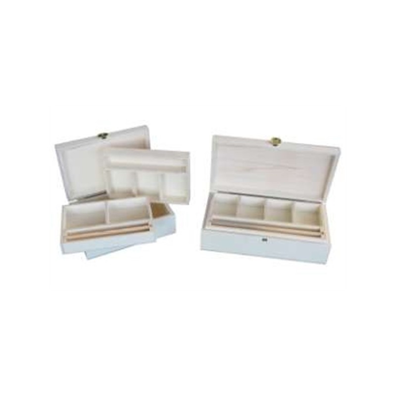 Caixa com dois tabuleiros para bijuteria e anéis.