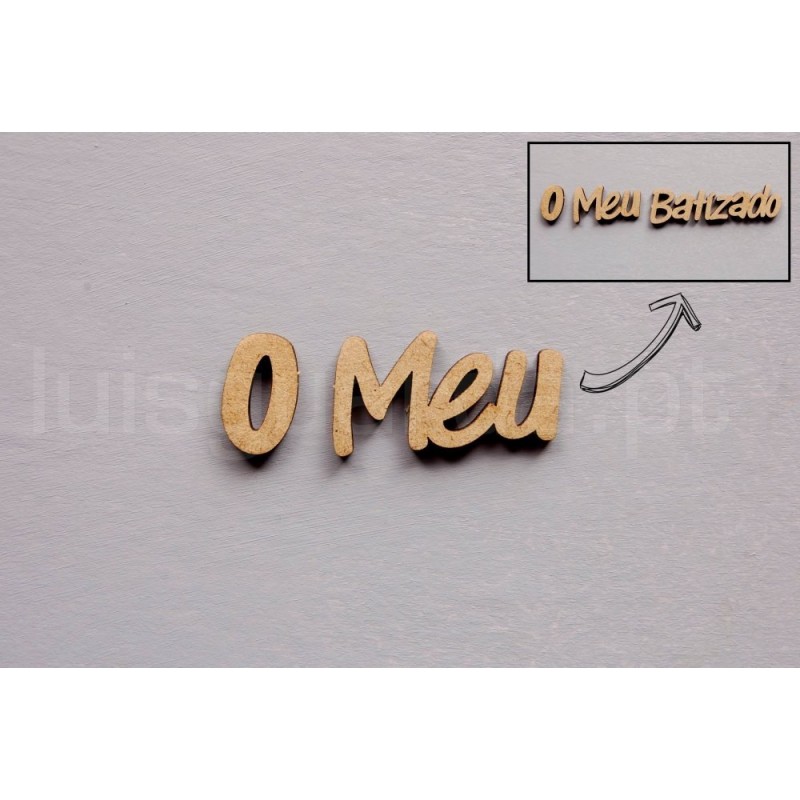 Palavra "O Meu" em MDF com 6.2x2.4x0.3 cm.