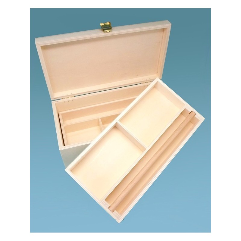 Caixa tampa lisa rectangular com 2 tabuleiros e ripa para inserir os aneis (29x15x9cm)