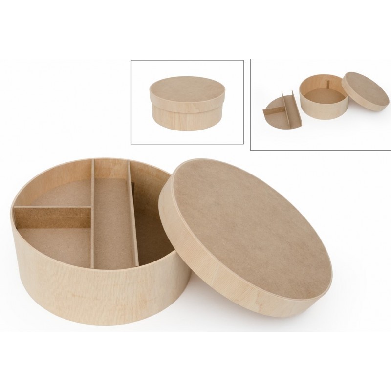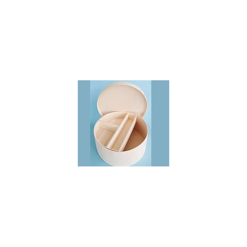 917 321 358**Caixa redonda com 1 tabuleiros para batizado. Pode colocar a roupinha, toalha, vela e concha.