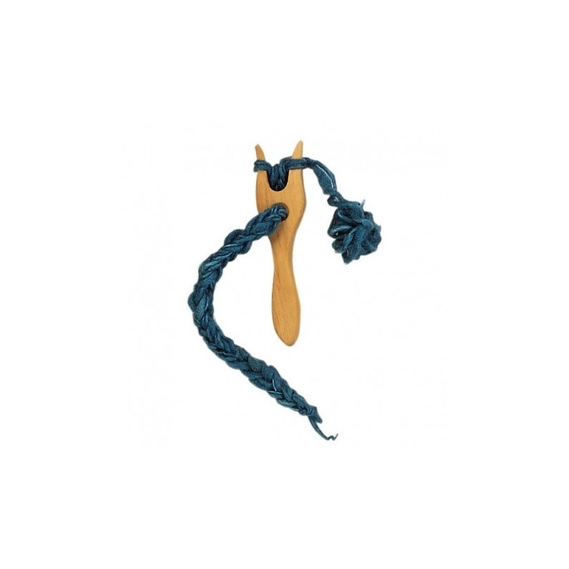 É uma ferramenta muito confortável, feita de madeira de faia, usada para fazer tranças e cordas. O furo é para introduzir o fio. Depois de fazer isso, é muito fácil fazê-lo com uma técnica muito simples.