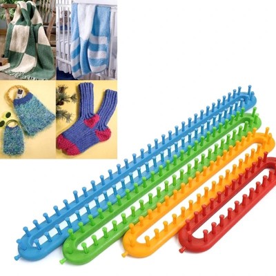 Os pinos do tear atuarão como as 2 agulhas de tricot. Enrole seus fios de lã ou fios em volta dos pinos e trabalhe com a agulha.