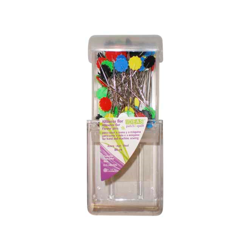 917 321 358**Caixa de 80 alfinetes com a cabeça em flor para patchwork e costura.