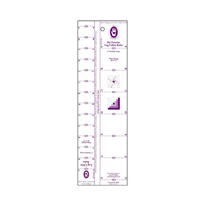 917 321 358**Log Cabin Ruler de Marti Michell - Régua para tiras de larguras 1" e 2". Régua em acrílico de 4 1/2" x 15". Cria blocos até 14".