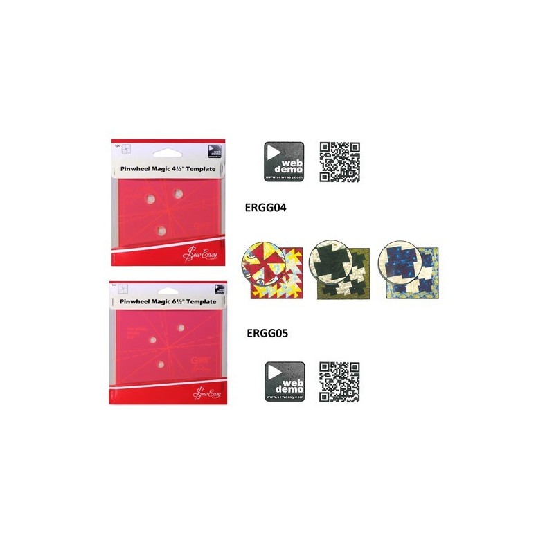 917 321 358**Sew Easy - O molde Pinwheel (cata-vento) Magic 6½” permite criar 3 formas distintas de quilts, utilizando os diferentes ângulos de inclinação para o corte dos quadrados.
