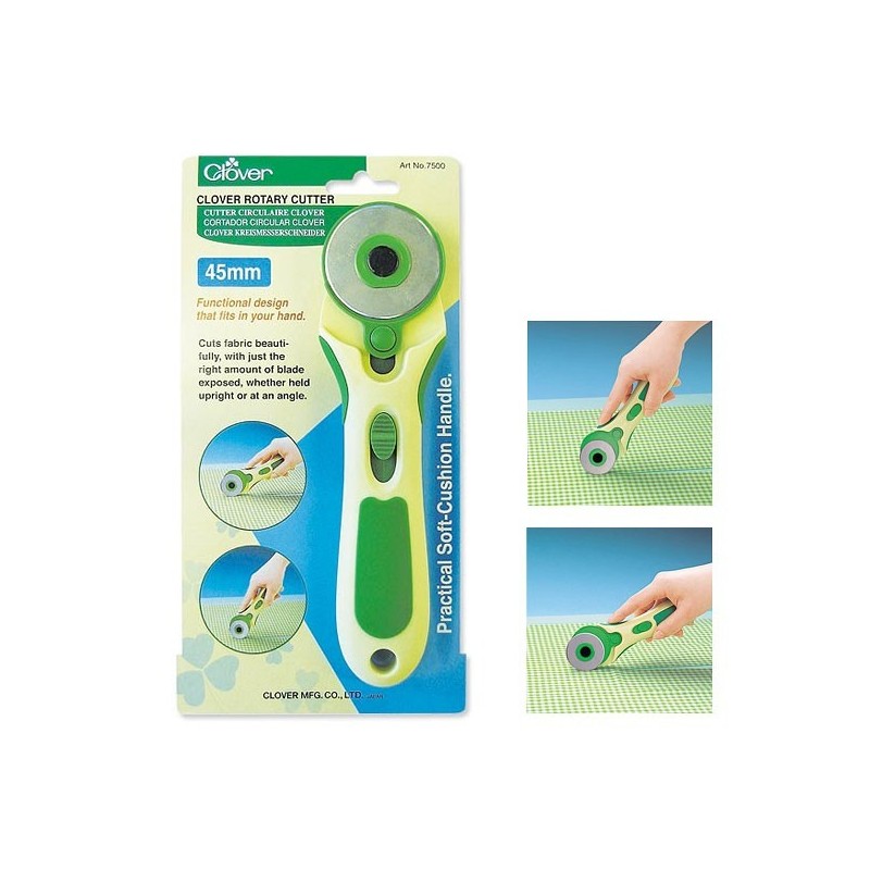 917 321 358**Clover - X-Acto rotativo 45mm para corte de tecidos da conceituada marca japonesa Clover, com cabo ergonómico e sistema simples de substituição da lâmina. Cortador ambidestro.