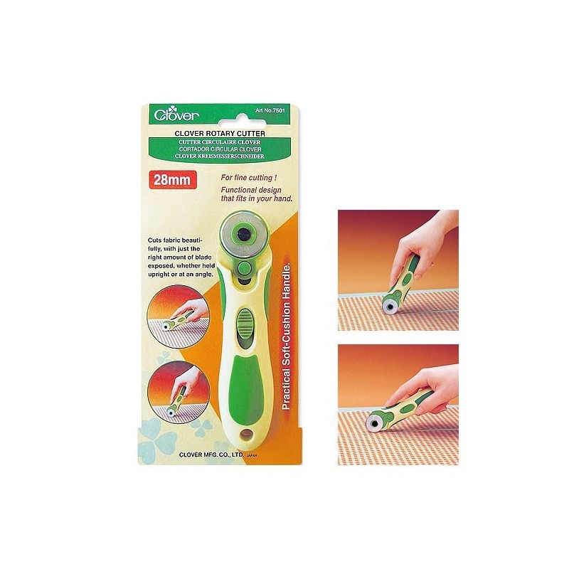917 321 358**Clover - X-Acto rotativo 28mm para corte de tecidos da conceituada marca japonesa Clover, com cabo ergonómico e sistema simples de substituição da lâmina. Cortador ambidestro.