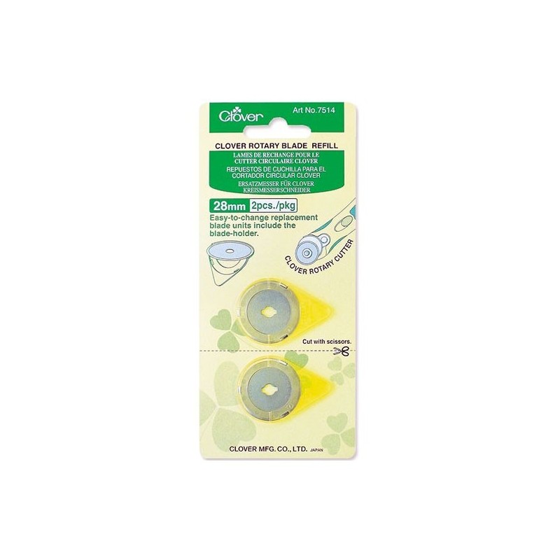 917 321 358**Clover - Duas lâminas para cortador circular 28mm Clover. As lâminas estão protegidas por um protetor que permite também uma aplicação mais simples e segura.