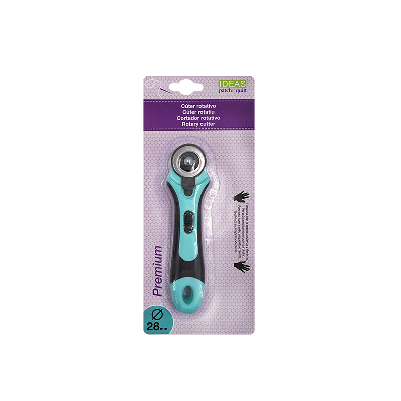 O Cortador Rotativo permite um corte preciso nos tecidos (e outros materiais, tal como papel, peles, napas, plastificados, etc). A sua lamina faz o corte sem desfiar o tecido. Assim não se criam sujidades nem se faz desperdício ou danos no tecido. Deve ser usado em combinação com a base de corte e a régua.