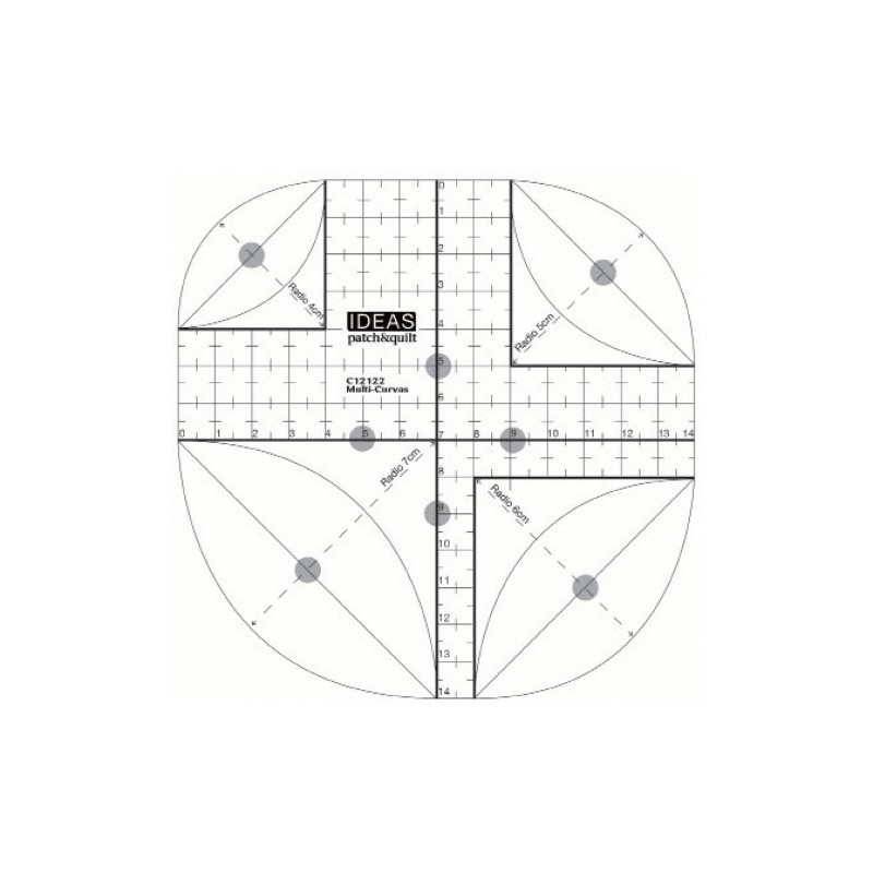 917 321 358**Com esta régua podemos cortar as bordas dos nossos projetos como bolsas, necessaires, colchas... e arredondar, tornando-os perfeitos. Podemos desenhar e cortar com tesoura ou cortar diretamente com o cortador. Cada canto da régua dá-nos uma medida diferente para escolher; 4, 5, 6 e 7 cm de raio.