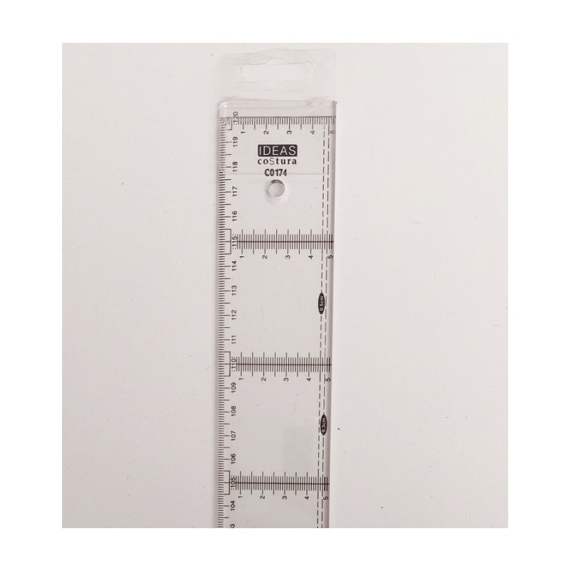 Inclui na sua parte inferior duas linhas para traçar margens de costura.