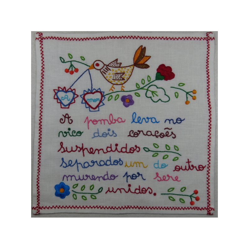 Cada lenço é uma peça única, que retrata sentimentos amorosos. As frases são escritas com erros ortográficos devido à idade e escolaridade das primeiras bordadeiras, era a fonética que importava. É um quadrado não perfeito.