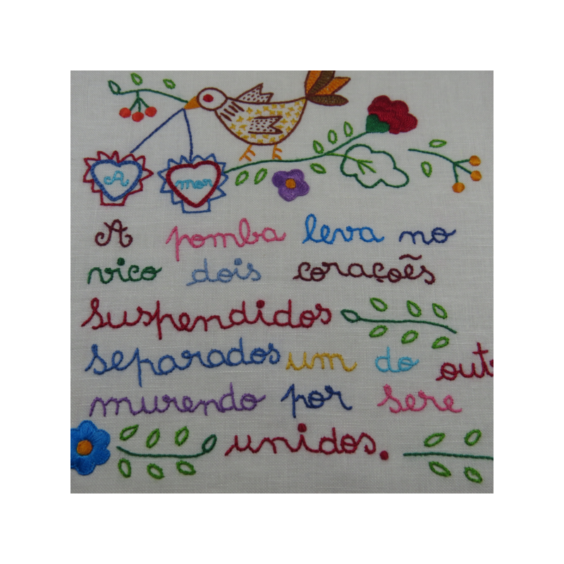 A todos os lenços estão associados histórias de amores felizes ou menos ditosos, paixões avassaladoras ou simples fulgores momentâneos retratados nos desenhos policromáticos bordados sobre a brancura do linho.