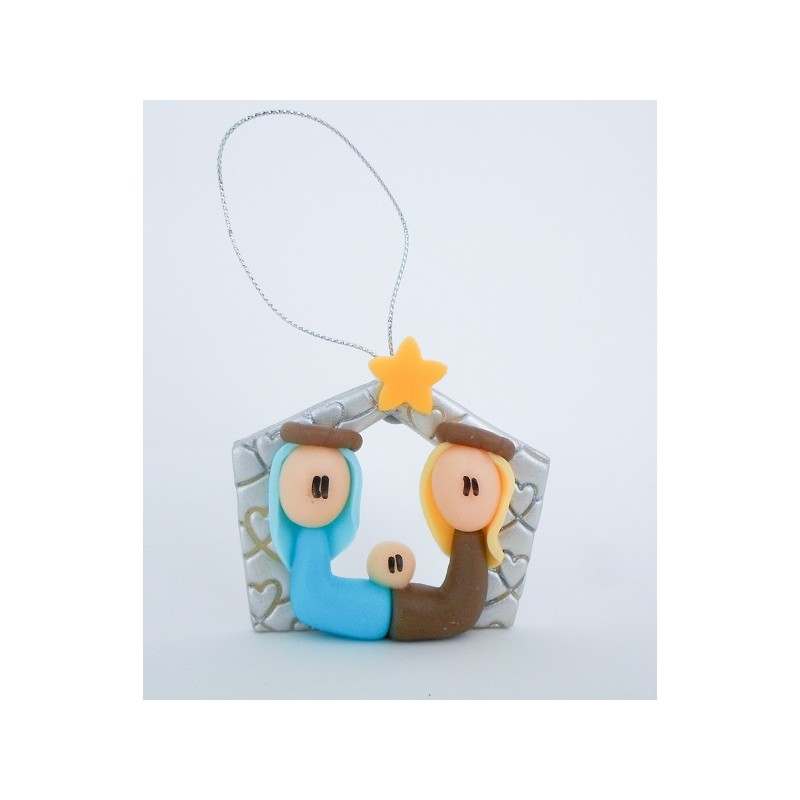 Placa com presepio na cabana em biscuit 5,5x6,5cm