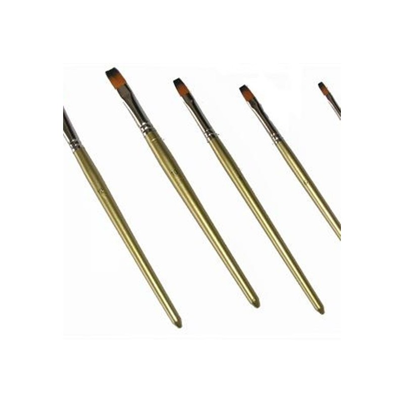 Pincel de cabo dourado com 20cm com cerdas de pelo sintético espatulado.