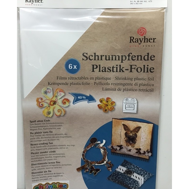 917 321 358**Modo de utilização: Desenha-se na folha com lápis de cor, recorta-se o desenho deixando área à volta e coloca-se em cima de uma folha de alumínio para cozer no forno a 175ºC. A folha encolhe aproximadamente 40% do original e poderá utilizar o desenho em porta-chaves, pendentes, figuras para pendurar no frigorifico, etc..