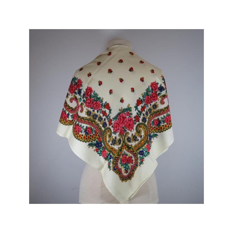 O lenço regional de Viana é utilizado no traje de Domingar, tendo como principal característica o colorido. Lenço 100% viscose com 90 x 90 cm.