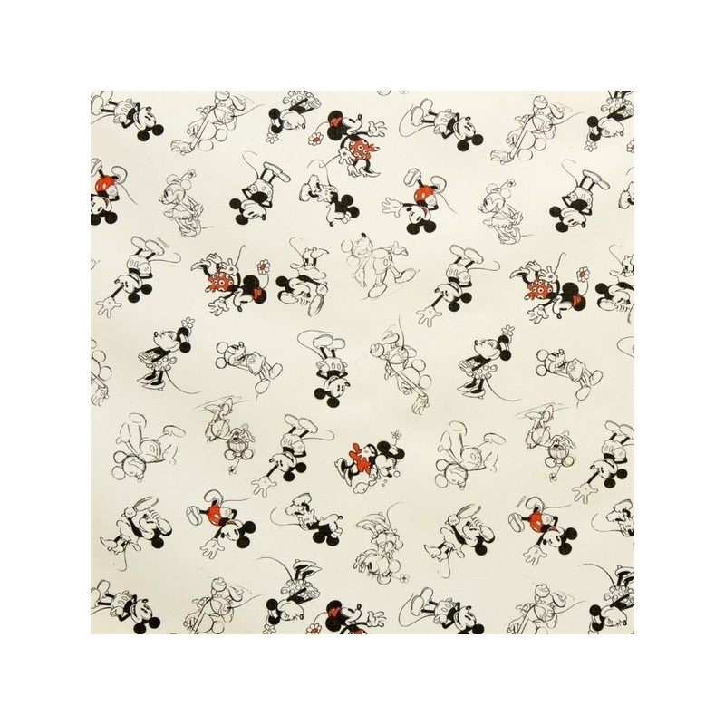 917 321 358**Tecido estampado infantil com personagens da Disney, como o Mickey e a Minnie em estilo vintage num fundo branco.