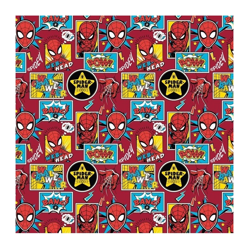 917 321 358**Tecido Super-Heróis Marvel Homem-Aranha Badge Vermelho Tecido com fundo vermelho e padrão de remendos em estilo banda-desenhada do Homem-Aranha