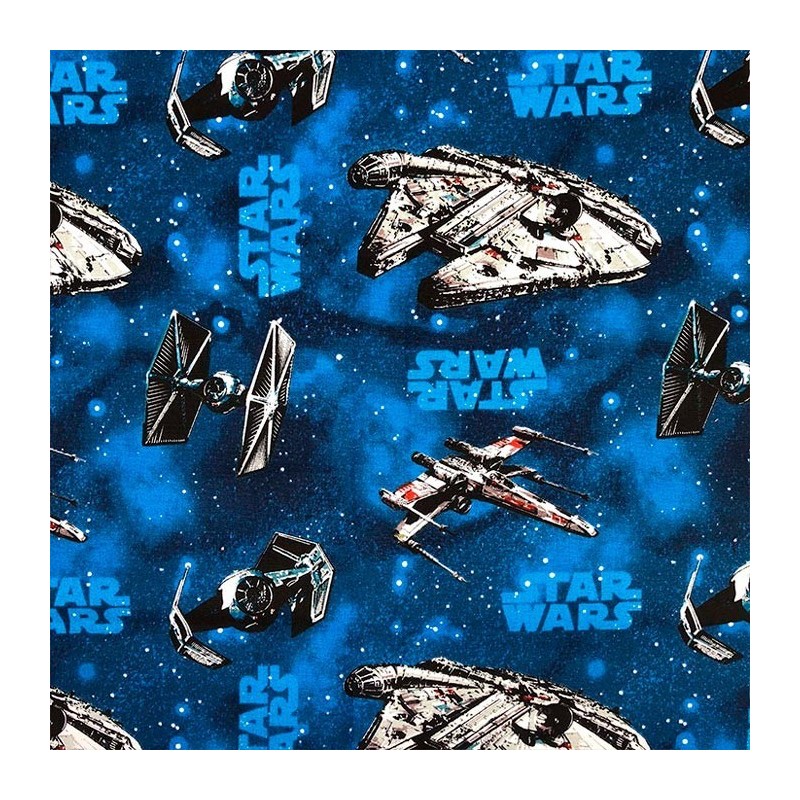 917 321 358**Tecido Star Wars Naves Azul Tecido Star Wars com fundo azul galáxia e naves espaciais