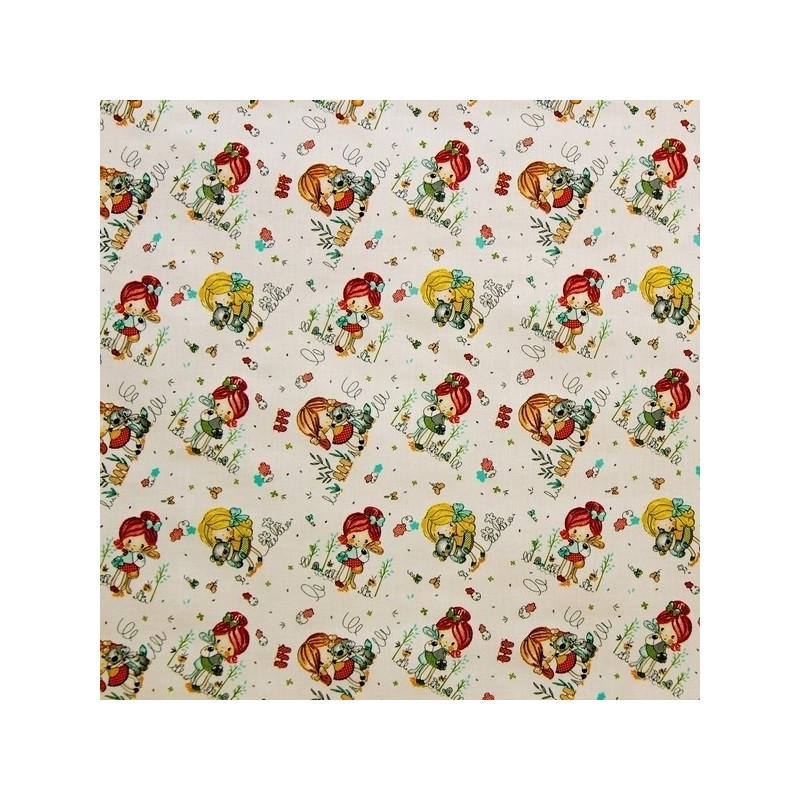 917 321 358**Tecido estampado em percal de algodão com bonecas em tom multicolor.