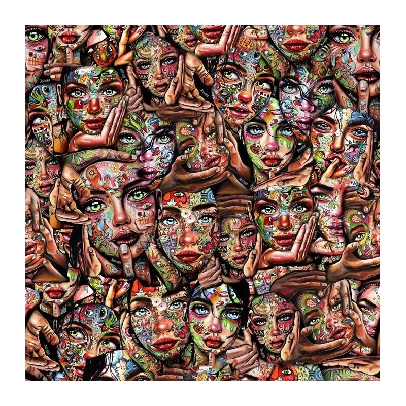 917 321 358**Tecido estampado em half-panamá de algodão orgânico biológico (cultivado sem utilização de agrotóxicos e pesticidas) de dupla largura com ilustrações da artista plástica lisboeta Xana Abreu inspirada em algumas das suas telas da série In Your Skin / Na Tua Pele.