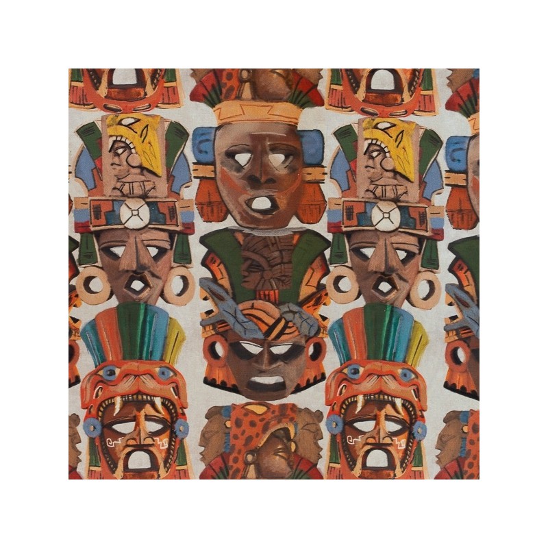 917 321 358**Tecido de estampagem digital em half-panamá de algodão orgânico biológico (cultivado sem utilização de agrotóxicos e pesticidas) de dupla largura, em estilo étnico com máscaras em tons multicolor. Recomendado para quartos, salas, escritórios, decoração de lojas, confecção de malas e outros adereços.