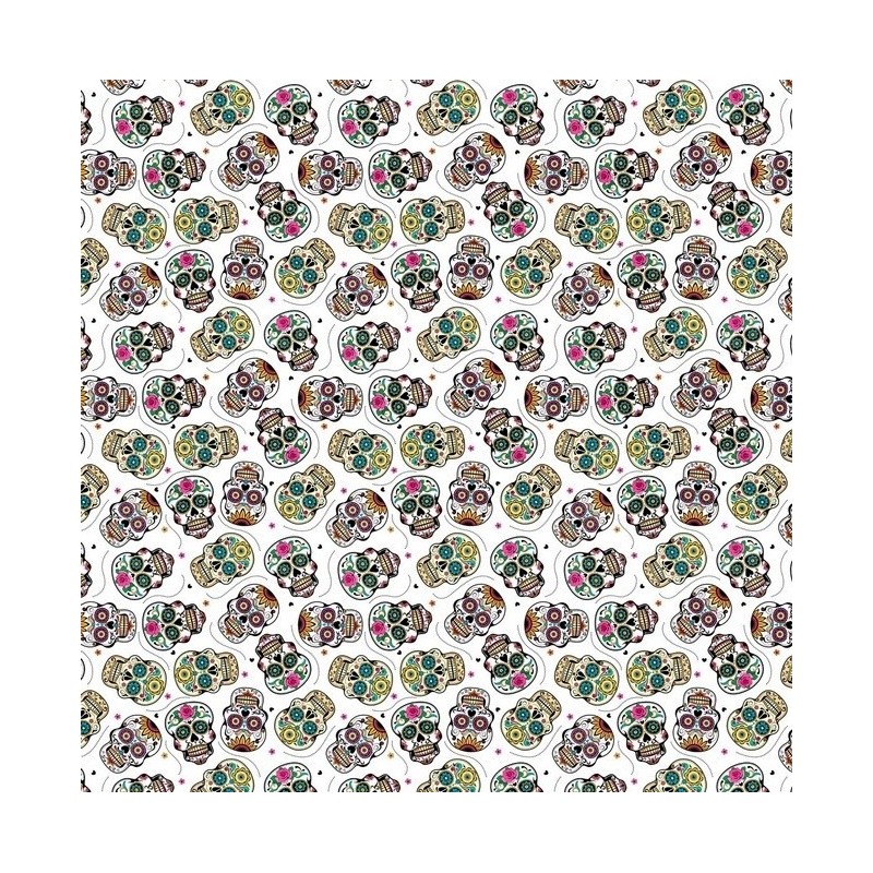 917 321 358**Tecido de estampagem digital em percal de algodão com pequenas caveiras do Dia de los Muertos em tons multicolor.