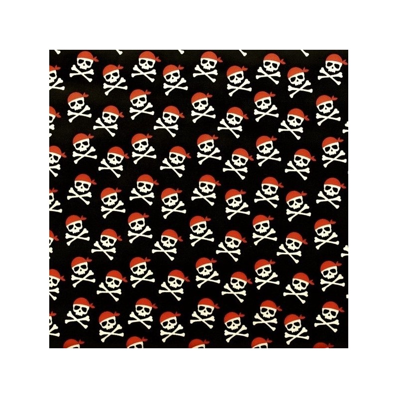 917 321 358**Tecido de estampagem digital em percal de algodão com caveiras piratas sobre um fundo preto.