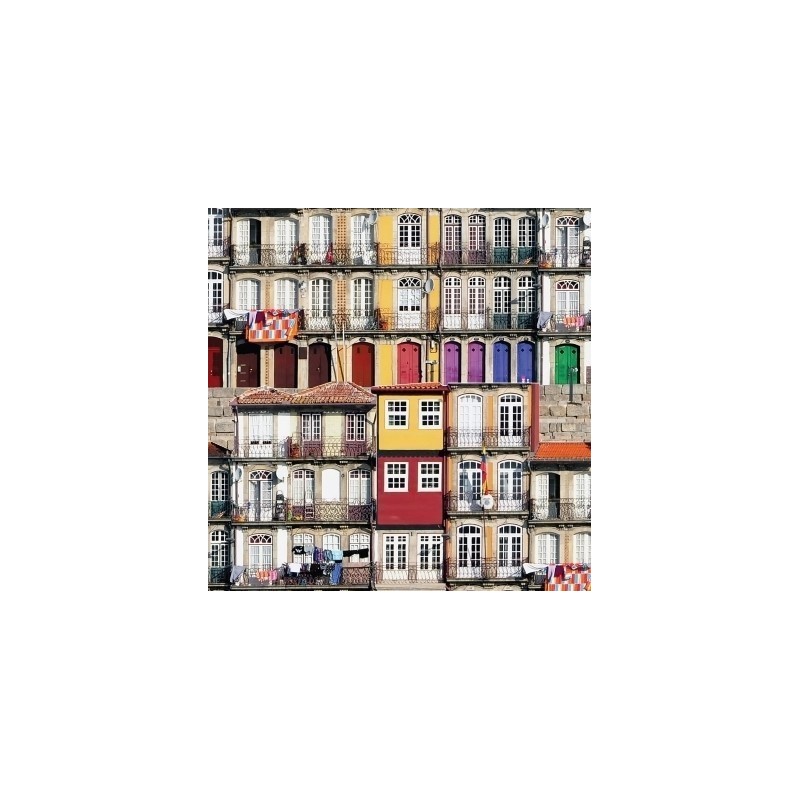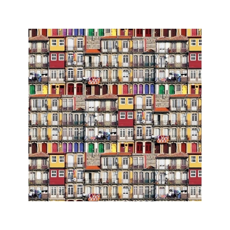917 321 358**Tecido estampado em algodão de dupla largura (280cm) com imagens das fachadas do casario da Ribeira do Porto em tons multicolor.