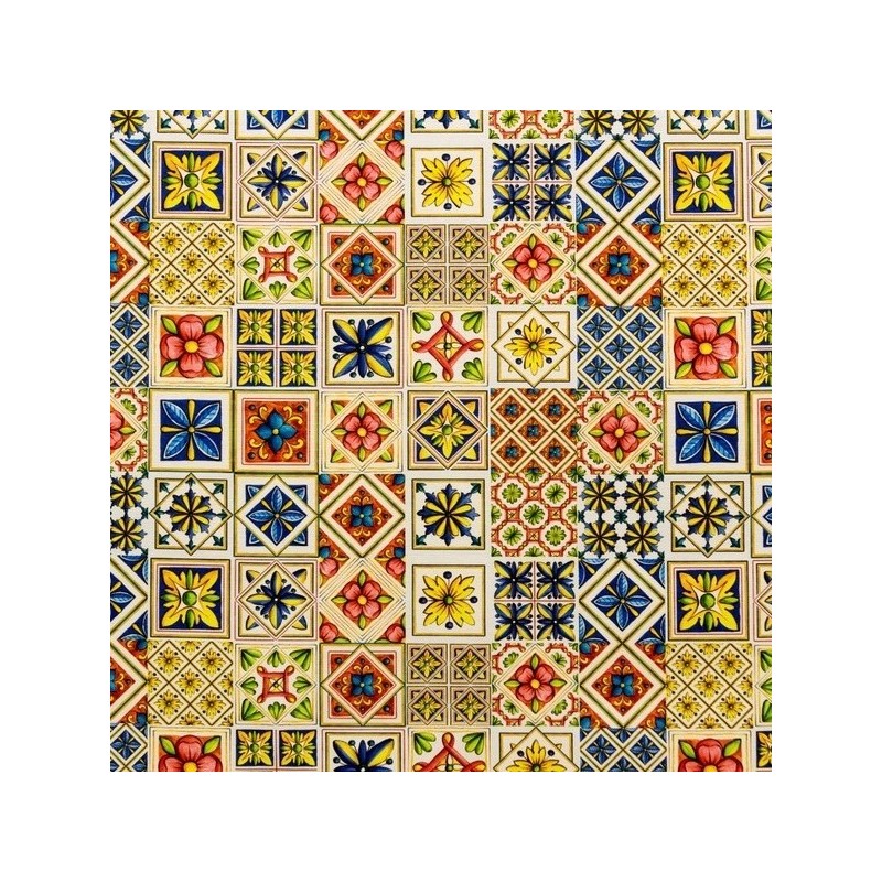 917 321 358**Tecido de estampagem digital em half-panamá de algodão de dupla largura com representação de azulejos portugueses em tons multicolor