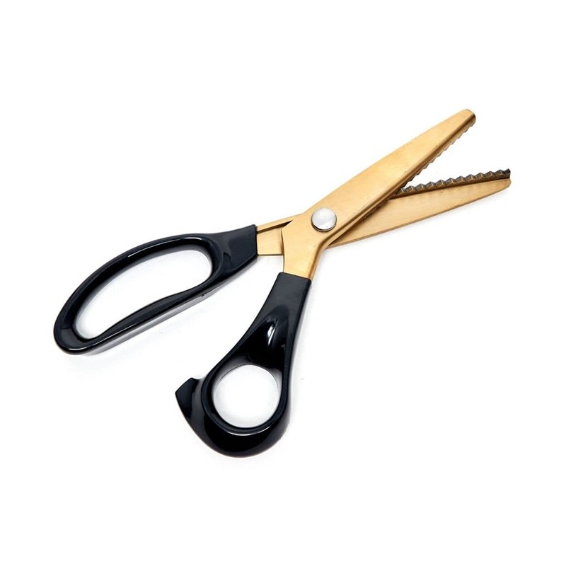 As Tesouras Pinking 23,5 cm da Hemline Gold são perfeitas para fazer cortes em ziguezague. Essa forma de corte é perfeita para fazer nas bordas e evitar que seus tecidos se desfiem. Pode cortar diferentes materiais: tecido, papel, papelão, espuma e muito mais!
