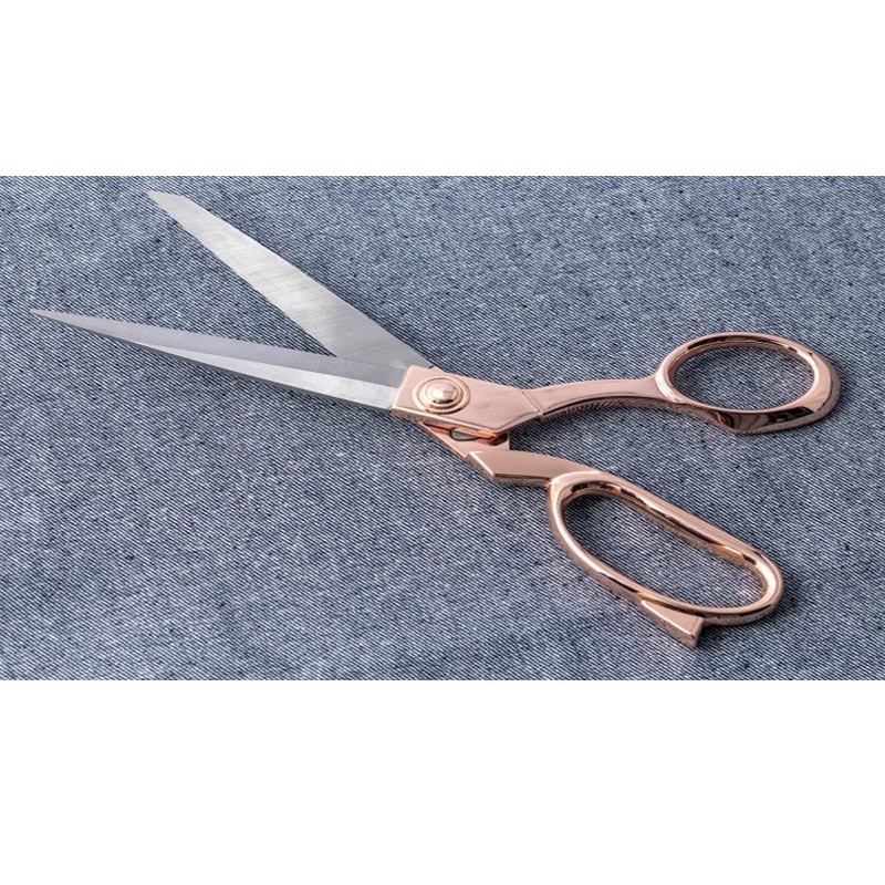 A Tesoura de Costura de 25,4 cm - Klassé é perfeita para uso em trabalhos de corte e costura. Elas apresentam lâminas afiadas feitas de aço inoxidável que cortam várias camadas de tecido ao mesmo tempo.