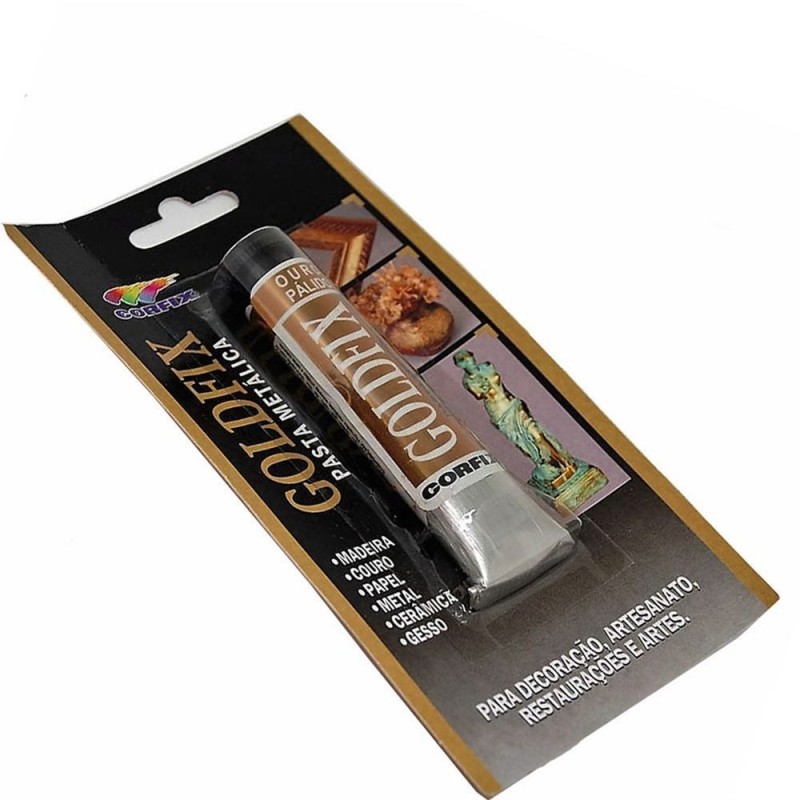 Corfix - A pasta Goldfix é ideal para dar acabamento metálico em molduras, móveis, trabalhos de restauração, maquetes e decorações de peças de gesso ou esculturas de madeira. Pode ser aplicado em também em papelão, argila, gesso, couro e outros.