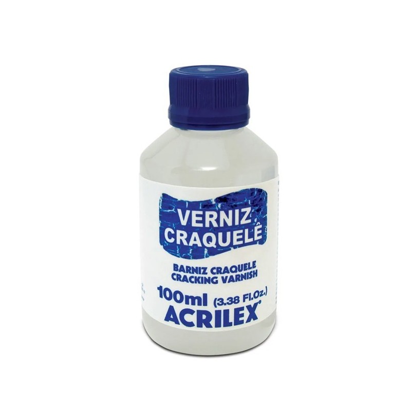 Acrilex - O verniz Craquelê da Acrilex é solúvel em água e indicado para craquelar as tintas acrílicas em peças de gesso, madeira, cerâmica, metal, papelão, etc.
